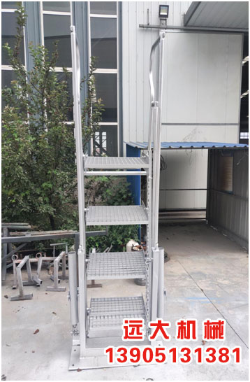 活動梯是為適應(yīng)油品裝卸棧橋與不同高度的槽車之間的連接而建立的安全通道。主要由踏步、扶手、彈簧缸平衡系統(tǒng)、鎖緊機(jī)構(gòu)等組成。按照結(jié)構(gòu)組成可分為兩步梯(YH-2)、三步梯(YH-3)、四步梯(YH-4)、五步梯(YH-5)。具有如下特點(diǎn):